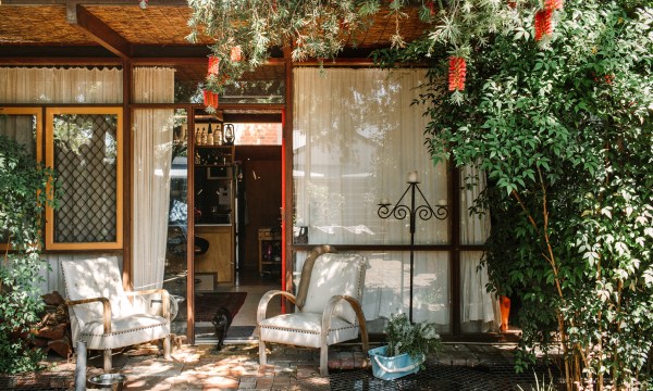 Built from Dickson Platten’s signature materials of red brick, raw concrete, timber, tiled roof, and thatched straw ceiling, the little building presents as an iconic Adelaide ’70s townhouse.
