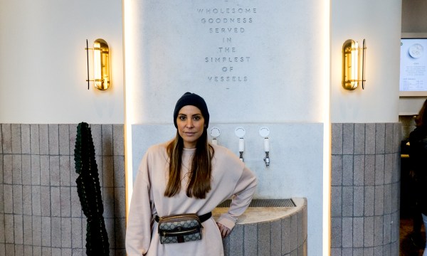 The floor of the café is busy but not hectic and we can see our interview subject, Danielle Elia, in a booth with her husband and another man. She’s leaning forward listening intently to the man speak and so we hang back and wait for a lull in the conversation before interrupting.