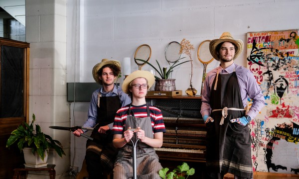 Cass wrangles “the boys”, as she referred to them in her text. Three young men sit down, 19-year-old Art Hussnain, 18-year-old Ben Viney, and 19-year-old Nathan Miles. It takes a little while to get the spelling right and then the sketch – er – interview begins.