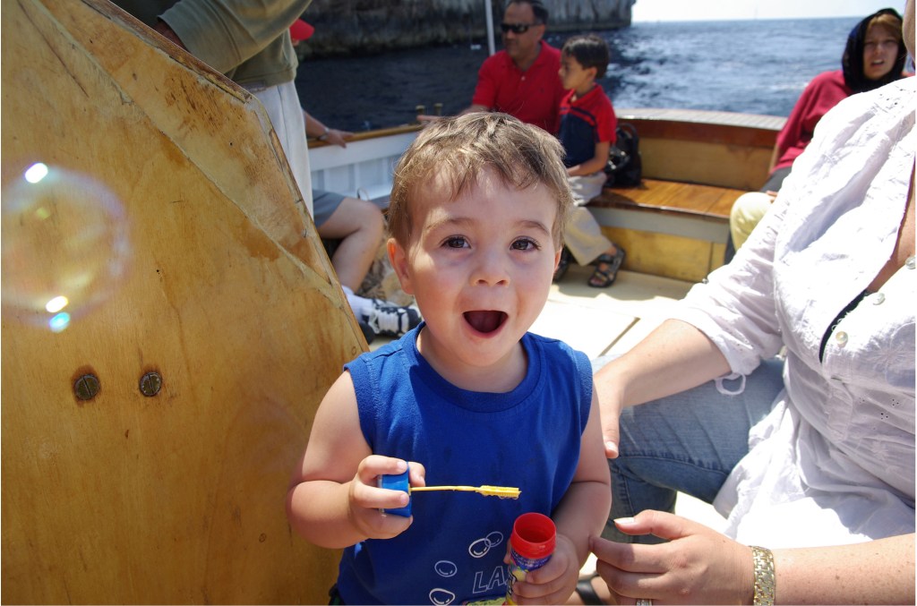On a family trip to Capri, Claudia entertained their son Marcus, who was two years old, by blowing bubbles in the middle of the Mediterranean Sea.