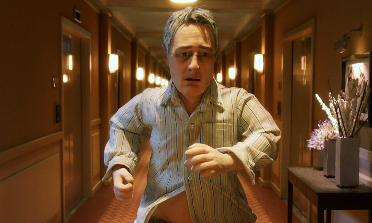 The film is animated, allowing for the extras to look alike and sound alike more easily. But remember the scene in Being John Malkovich where everyone is John Malkovich and all they can say is “Malkovich”? Clearly he’s toyed with this idea before, however through ego rather than a mid-life crisis of identity, so there would have to be other reasons for the animation. Perhaps to simplify the theme by making the production child-like? Perhaps to freak us out with strong sex-scenes?