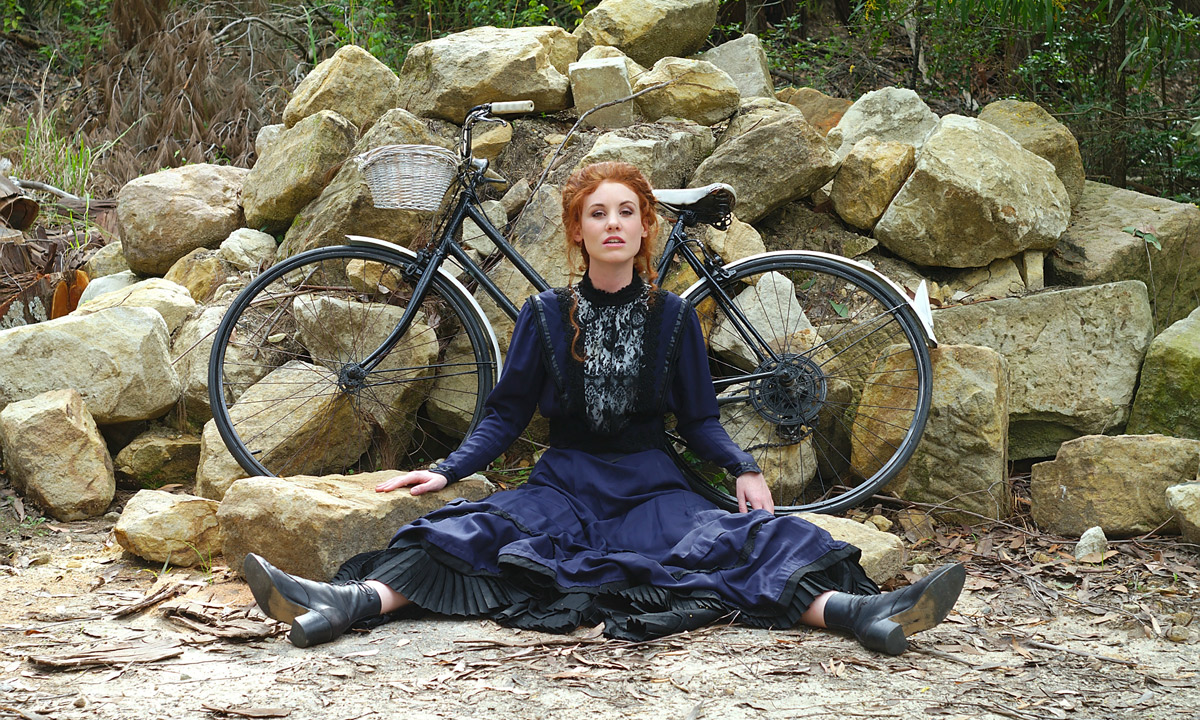 We begin with a young woman in the 19th century, enamoured with a gift of a bicycle, given to her by a seductive stranger who tells her to take it, but only if she dines with him at midnight. Not only does the idea of bloomers and freedom and this mechanical steed excite her, so does the thought of “being” with a man (“I have somewhere I want to go, and this bicycle will take me there”).