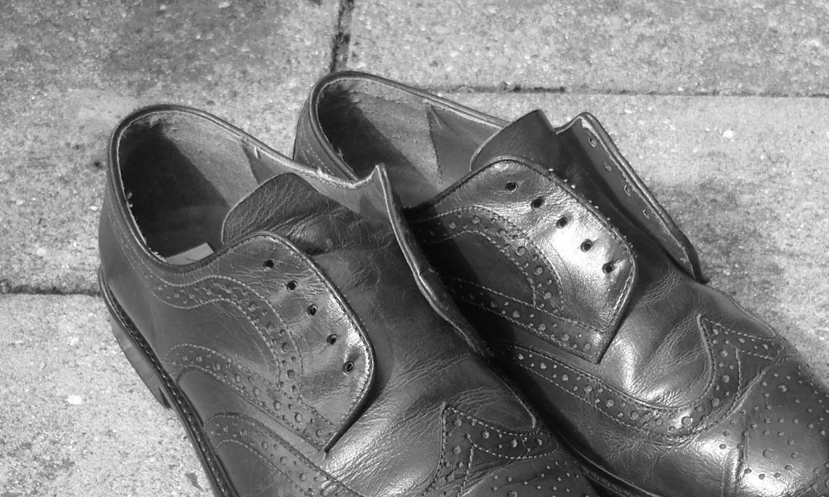 a pair of black leather brogues