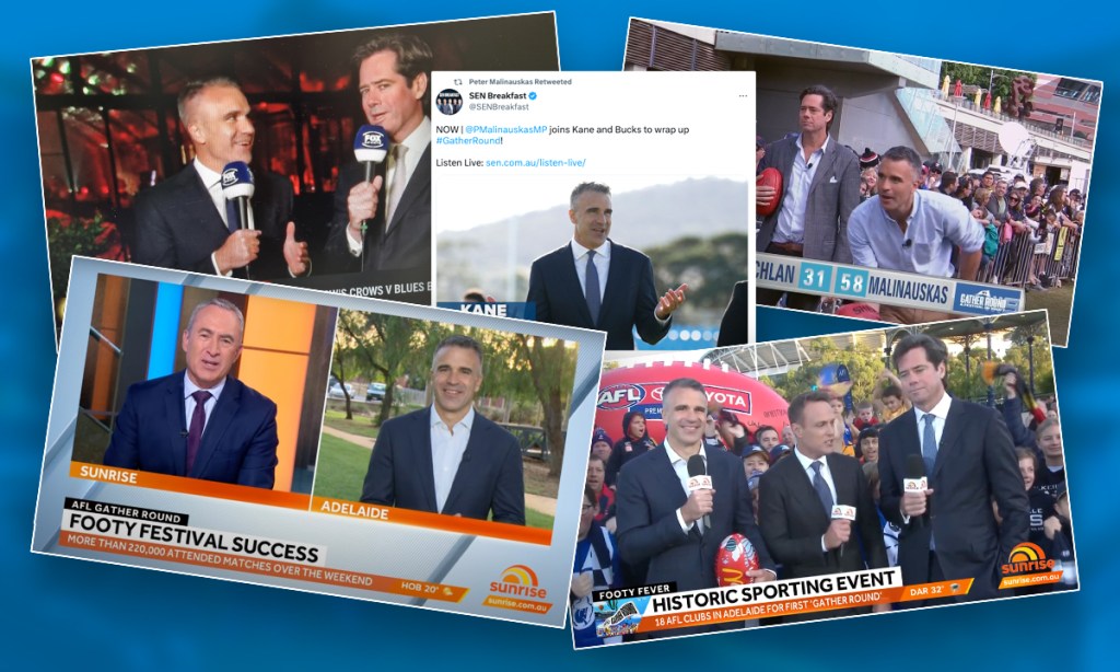 Premier Peter Malinauskas managed to bag the Gather Round festival for another three years while single-handedly setting a new state record in televised political football appearances.