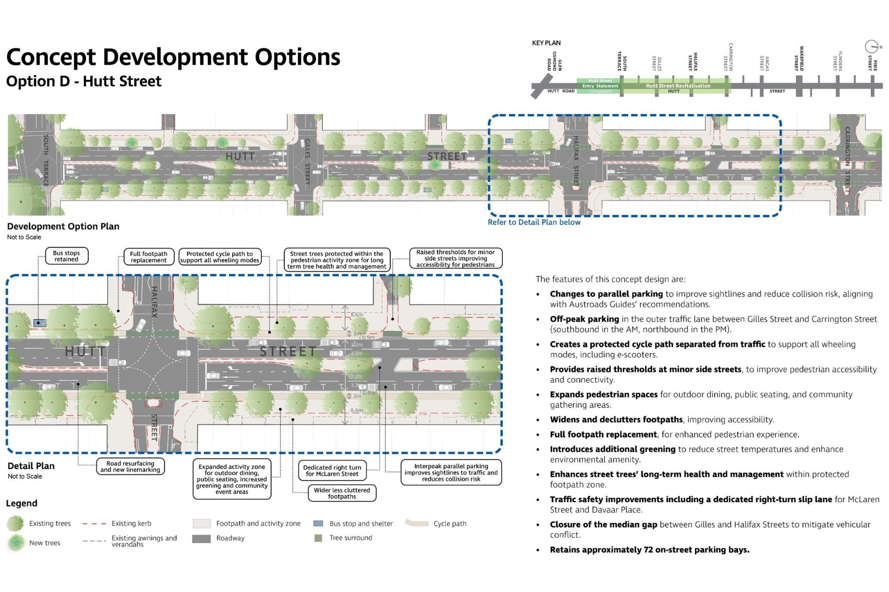 Other proposed changes to the street included doubling the amount of garden beds, improving street lighting and reducing the speed limit to 30km/h through the “village zone” between South Terrace and Carrington Street.
