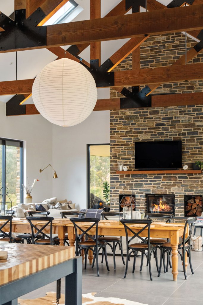 A sanctuary with a welcoming bluestone fireplace and a home with its modern farmhouse kitchen at its heart.