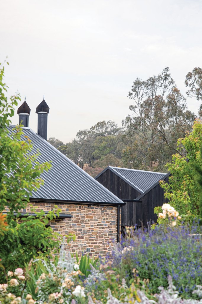 Luke says the aim was to create a modern take on a traditional farmhouse, creating an organic home made from local bluestone and blackened hardwood.
